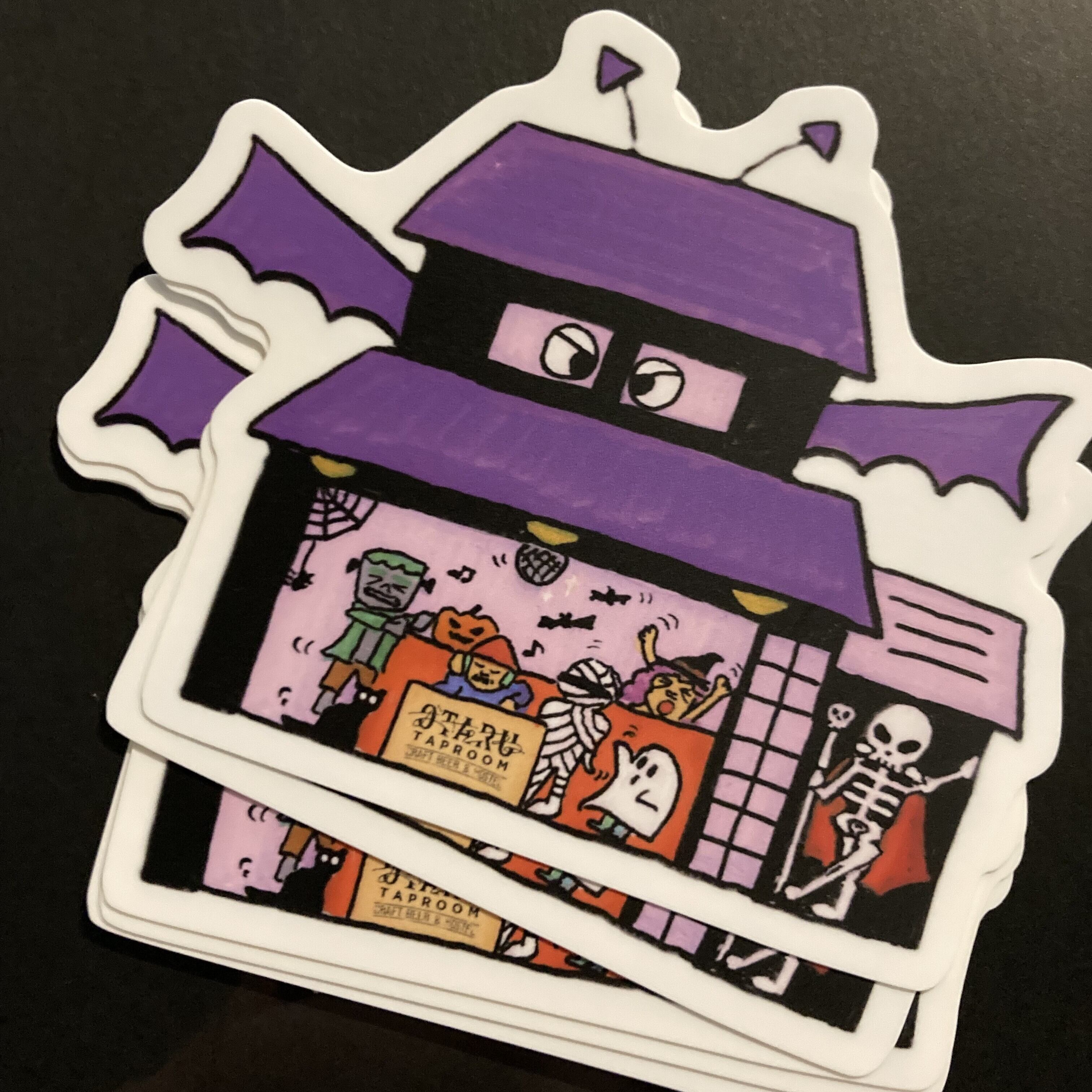 OTARU TAP ROOM恒例の楽しいハロウィンパーティを描いたオリジナルイラストを、ステッカーにしました!そのまま飾っても良し、お気に入りのノート等に貼るも良し、な大きめサイズ!防水仕様なのでスーツケース等にも貼れます!